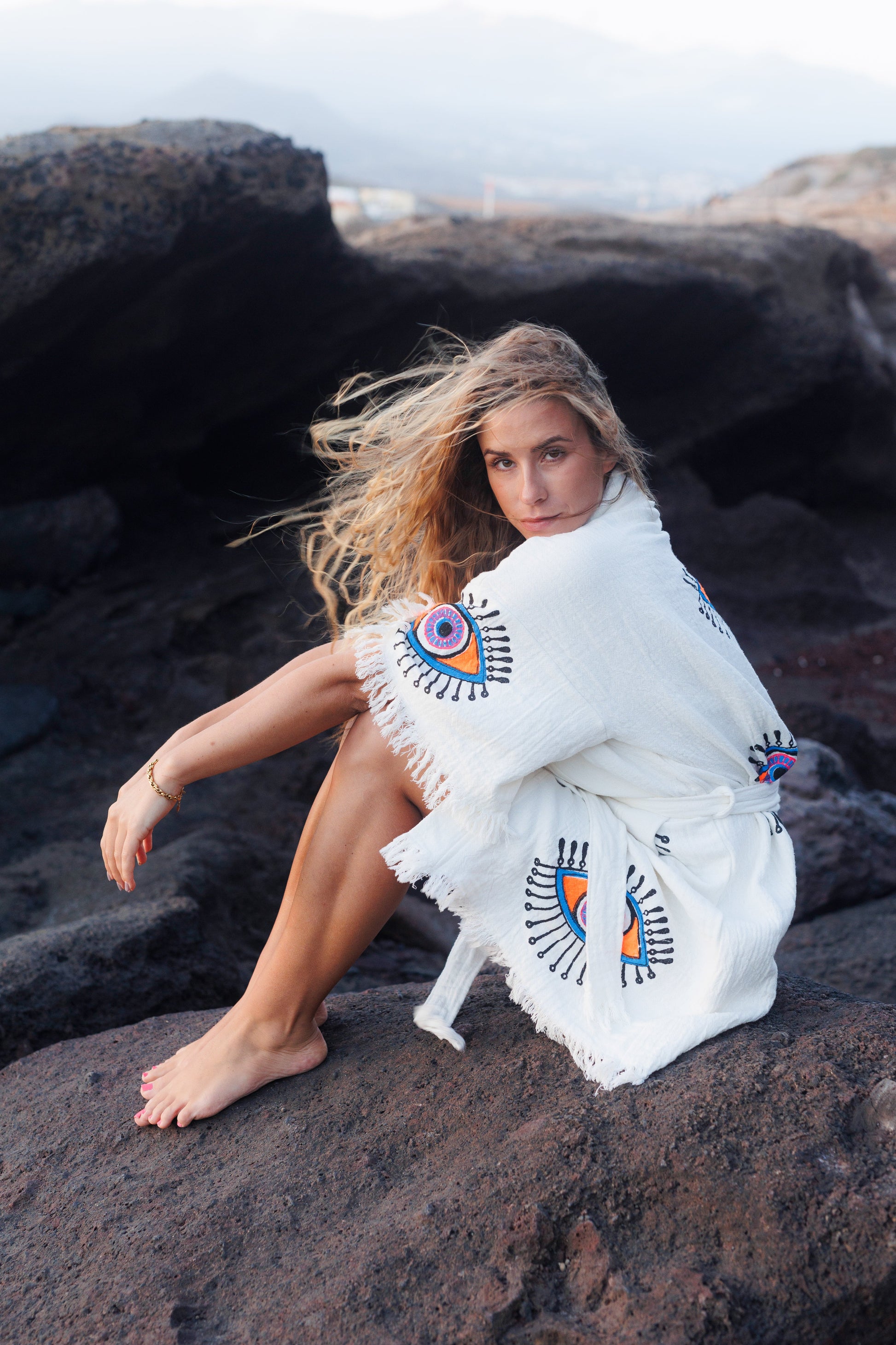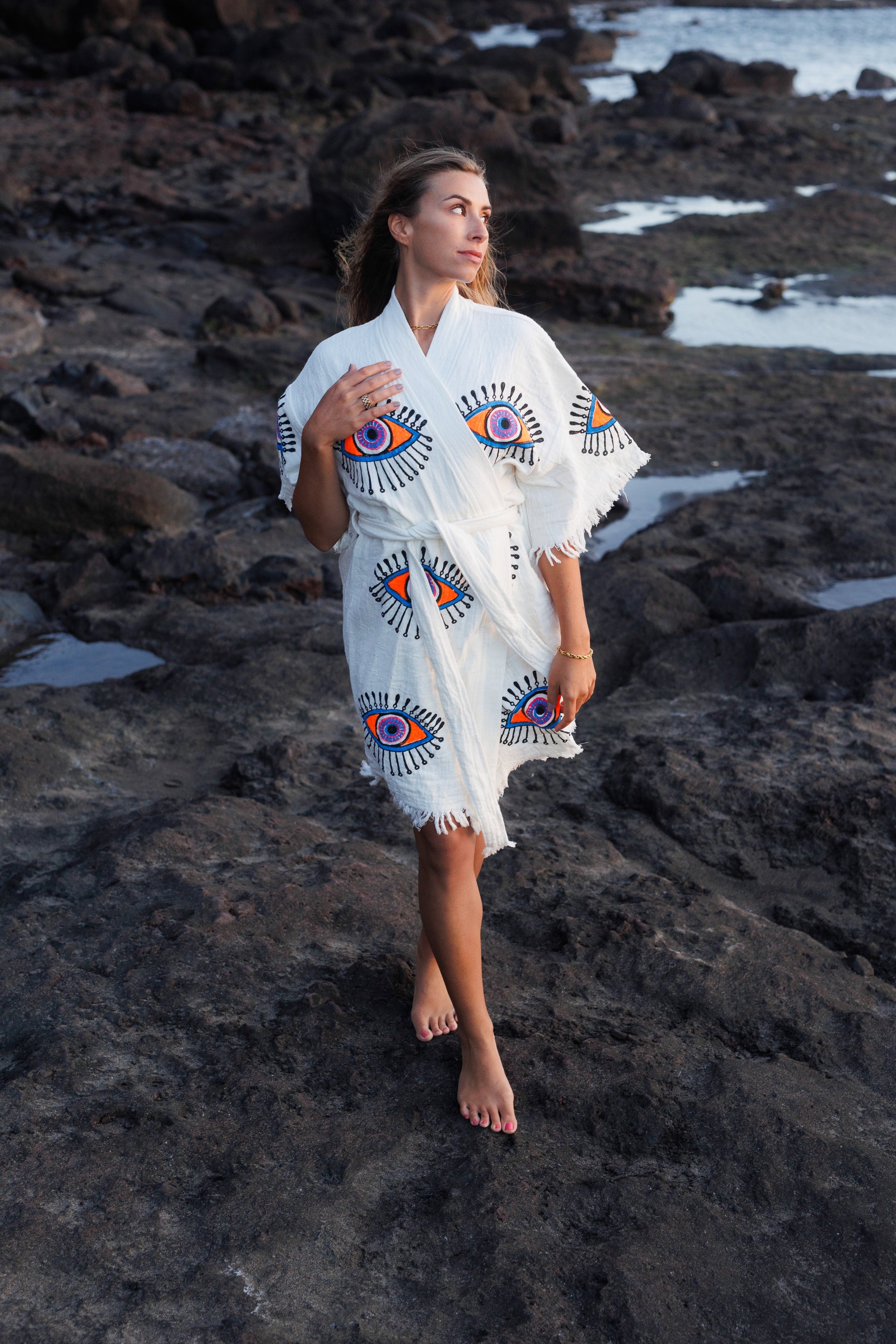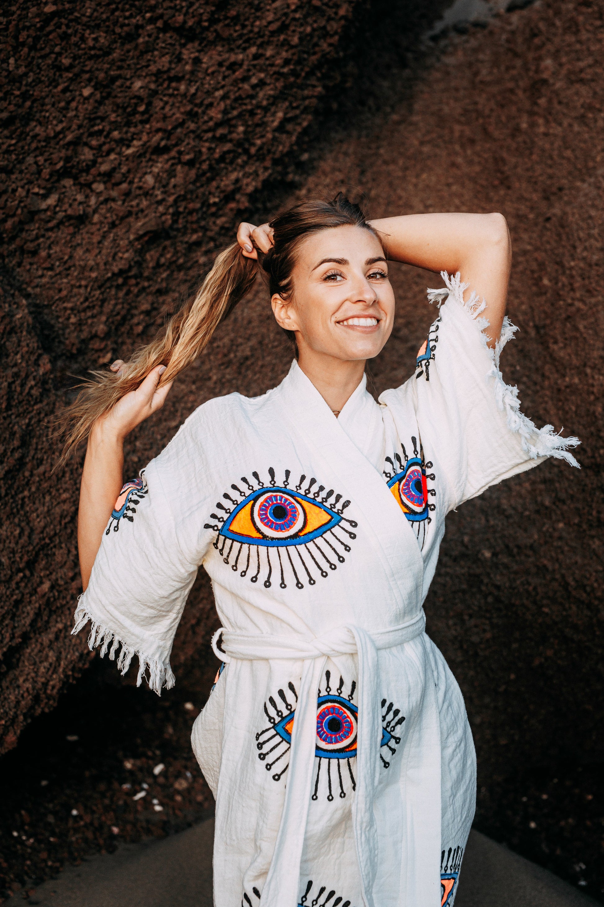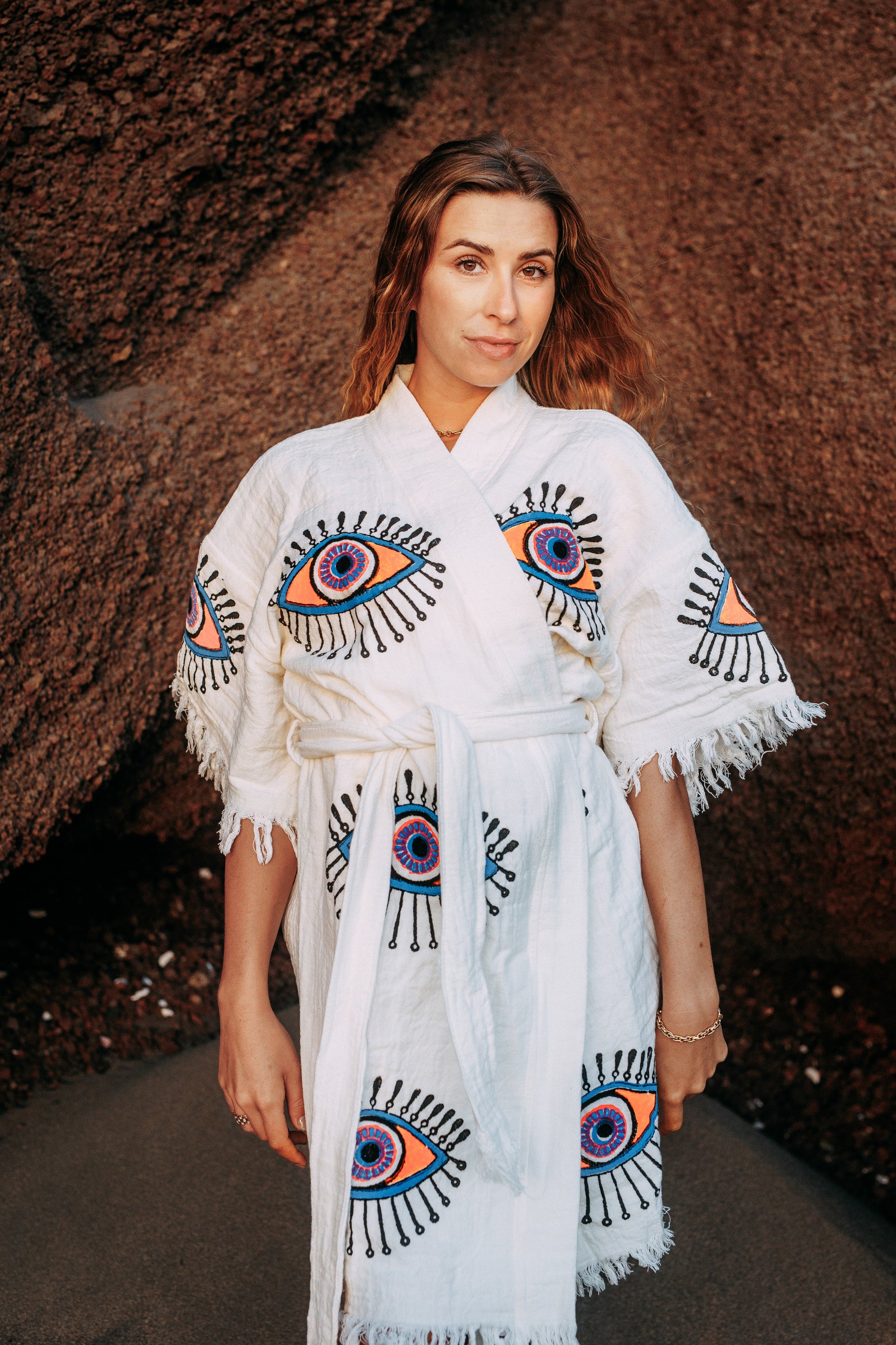100% Organic Cotton robe, hand made and printed robe. Enjoy this robe at home or on the beach. Our robes are made from Turkish towels making them so soft and highly absorbent.