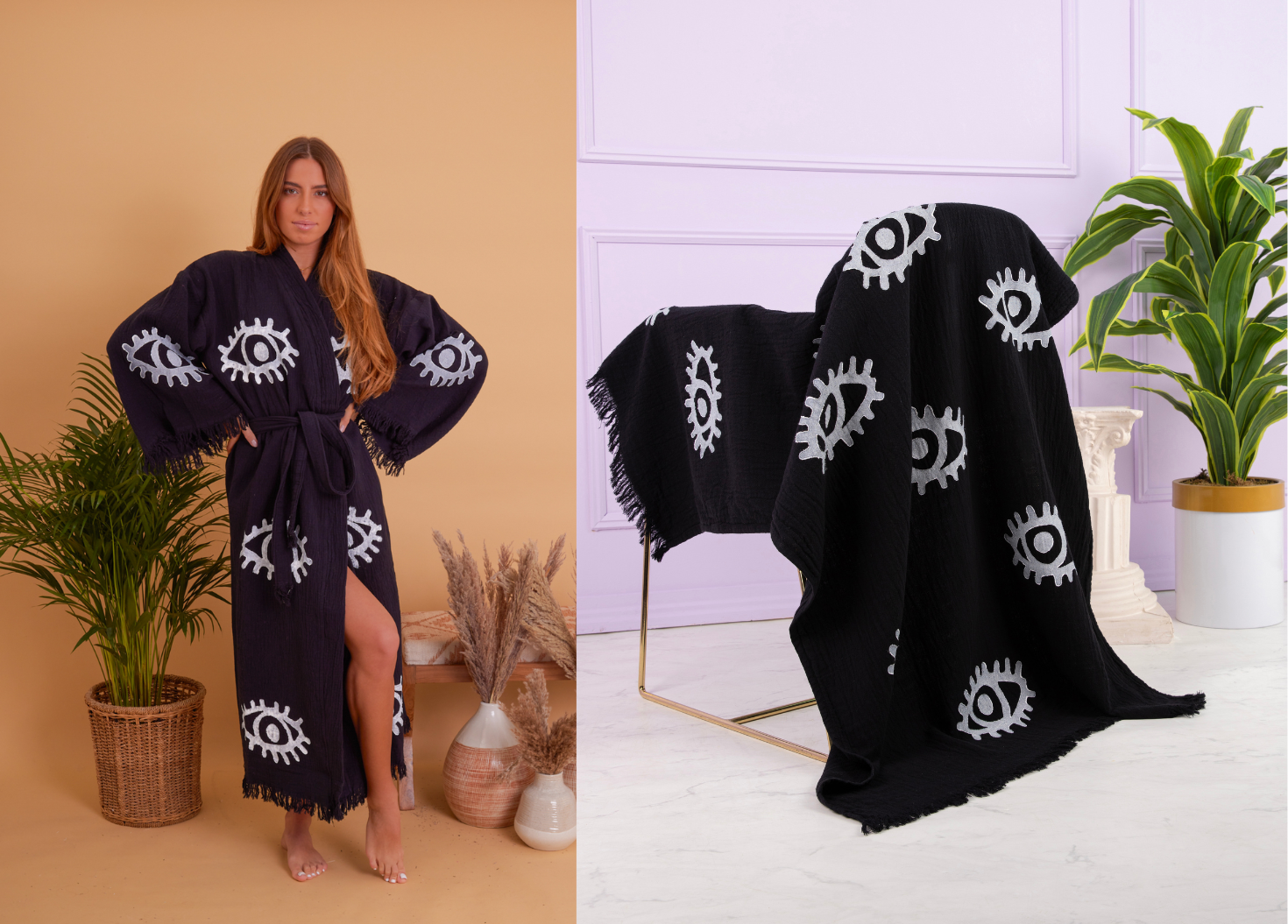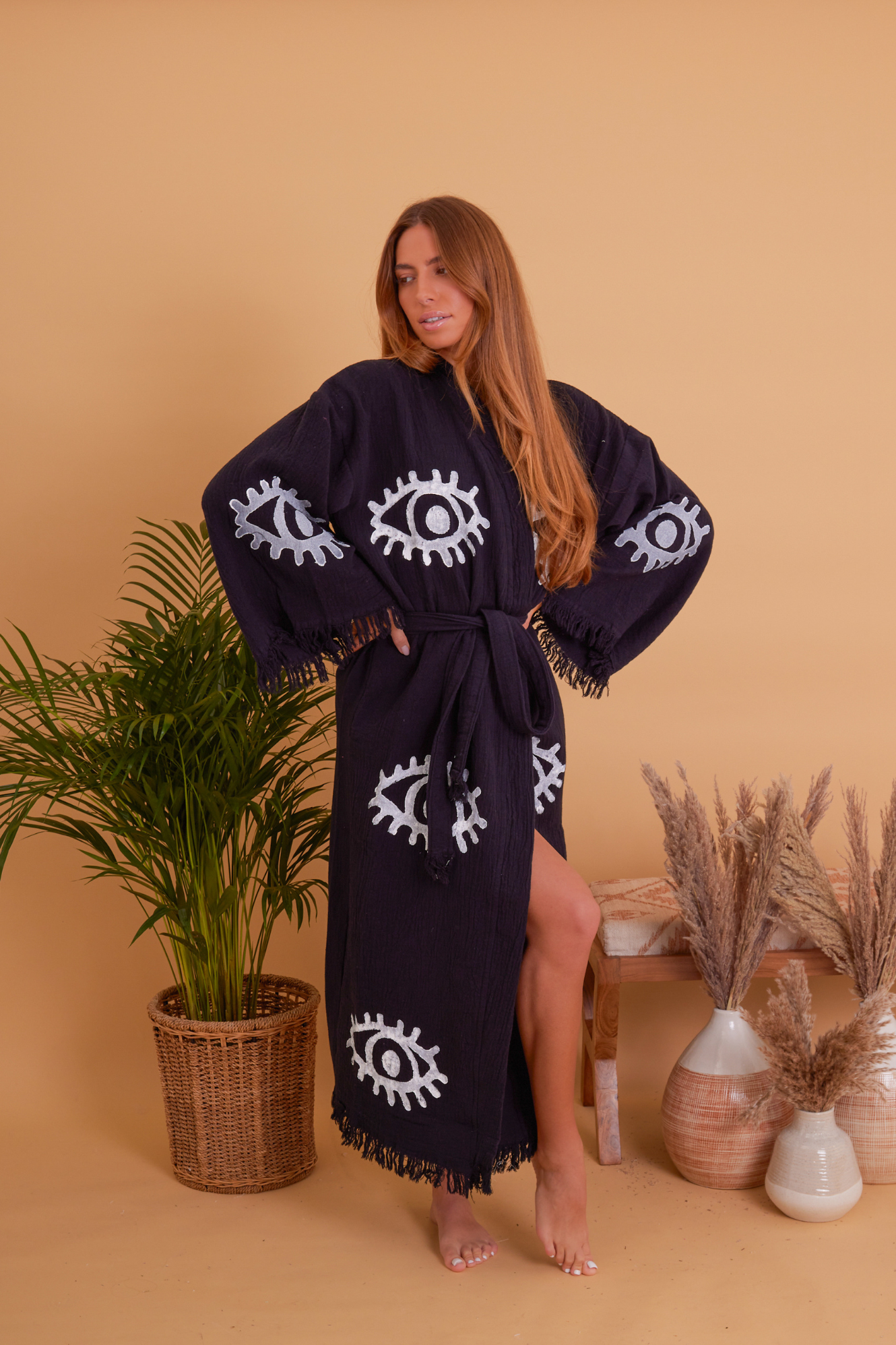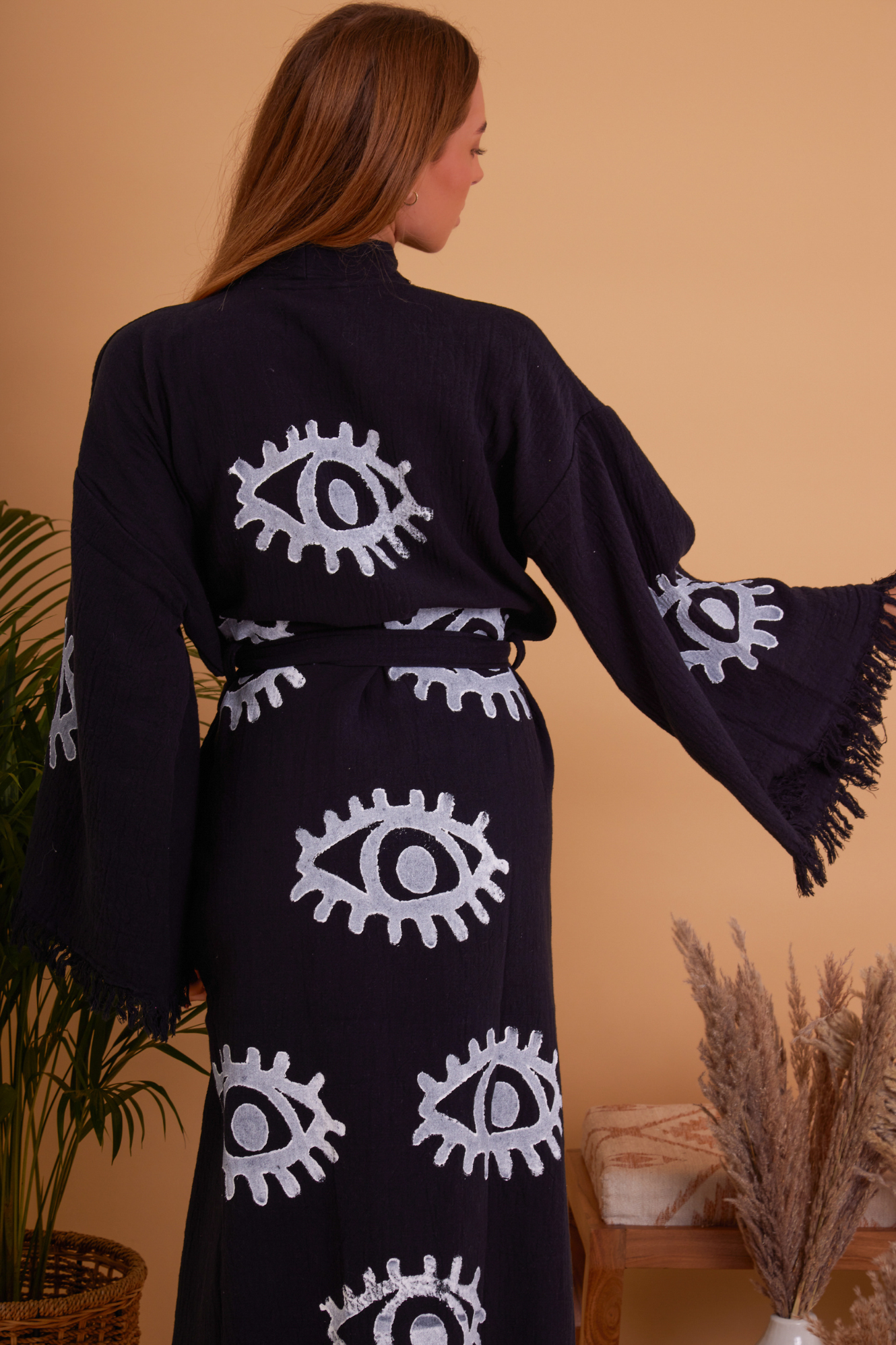100% Organic Cotton robe, hand made and printed robe. Enjoy this robe at home or on the beach. Our robes are made from Turkish towels making them so soft and highly absorbent.