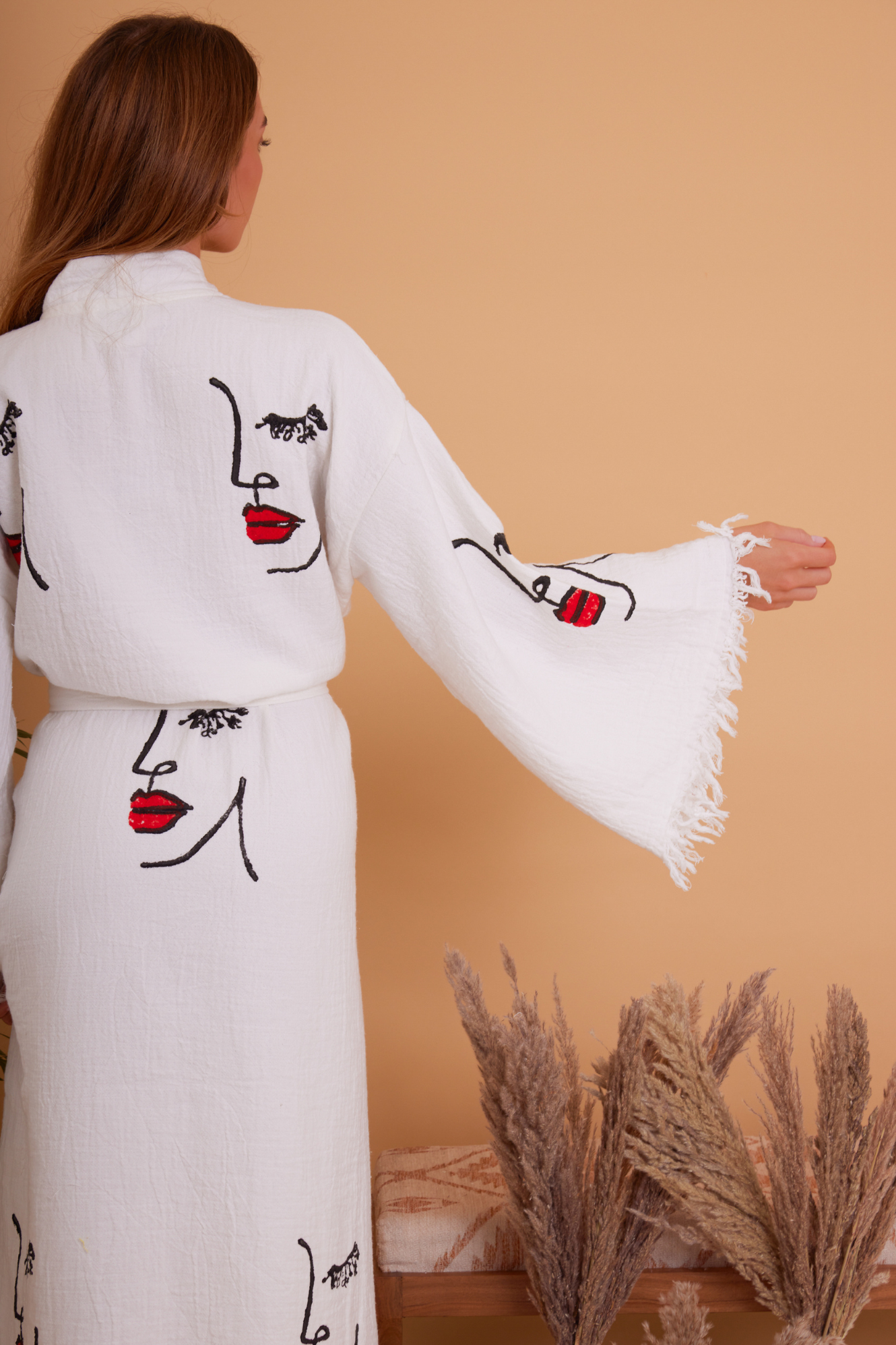 100% Organic Cotton robe, hand made and printed robe. Enjoy this robe at home or on the beach. Our robes are made from Turkish towels making them so soft and highly absorbent.