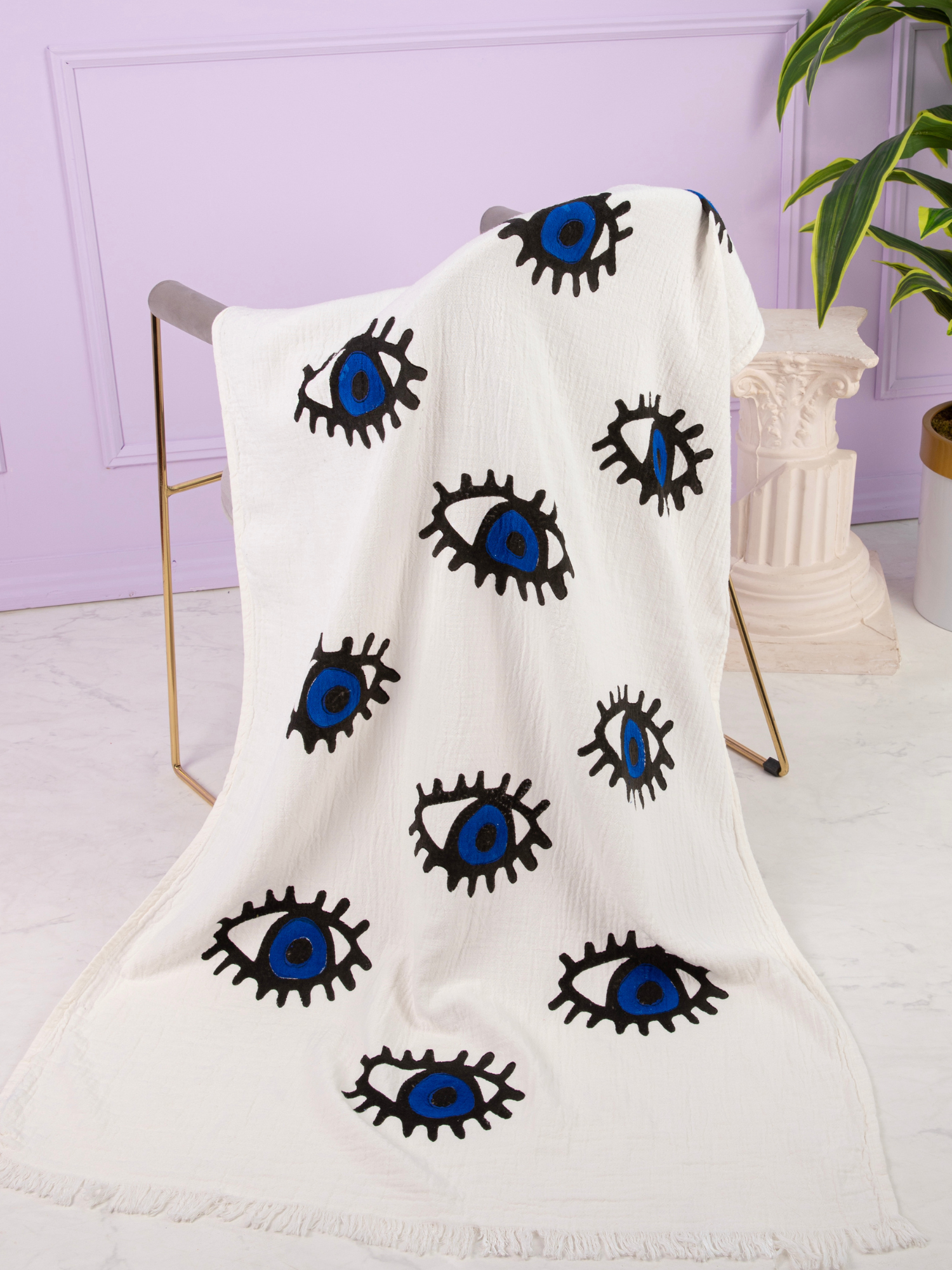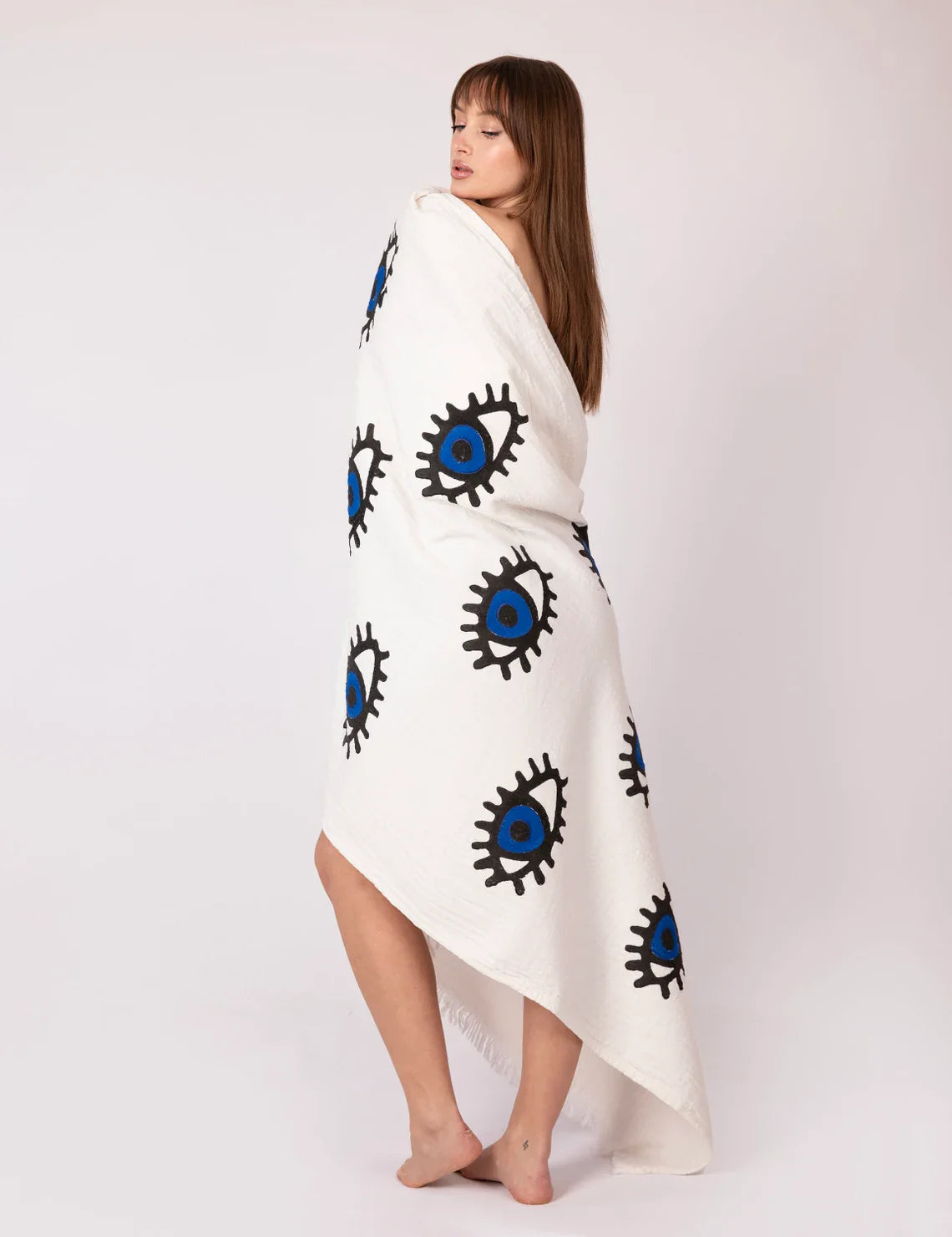 Indulge in this beautiful 90*180cms organic cotton, handmade/handprinted towel. Perfect for home use, straight from bath/shower over bed, sofa or use in summer months for the perfect beach towel!